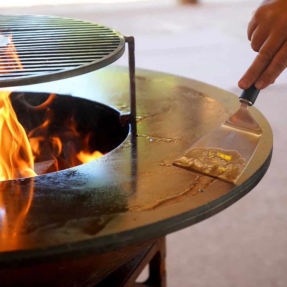 - Proposant 2 modes de cuissons, le brasero diamètre 1m vous permet de choisir entre une cuisson saine à la plancha ou une cuisson similaire au barbecue directement sur sa grille.