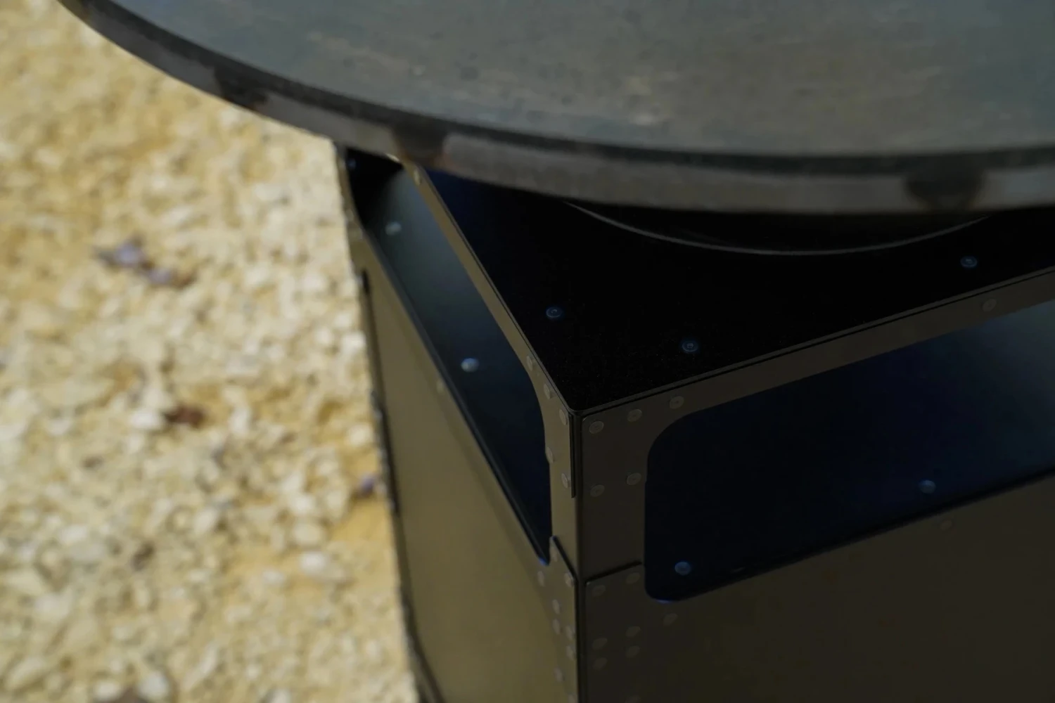 - Son chassis intégrant un espace de rangement, vous pouvez ranger vos buches afin d’alimenter votre brasero plus rapidement.