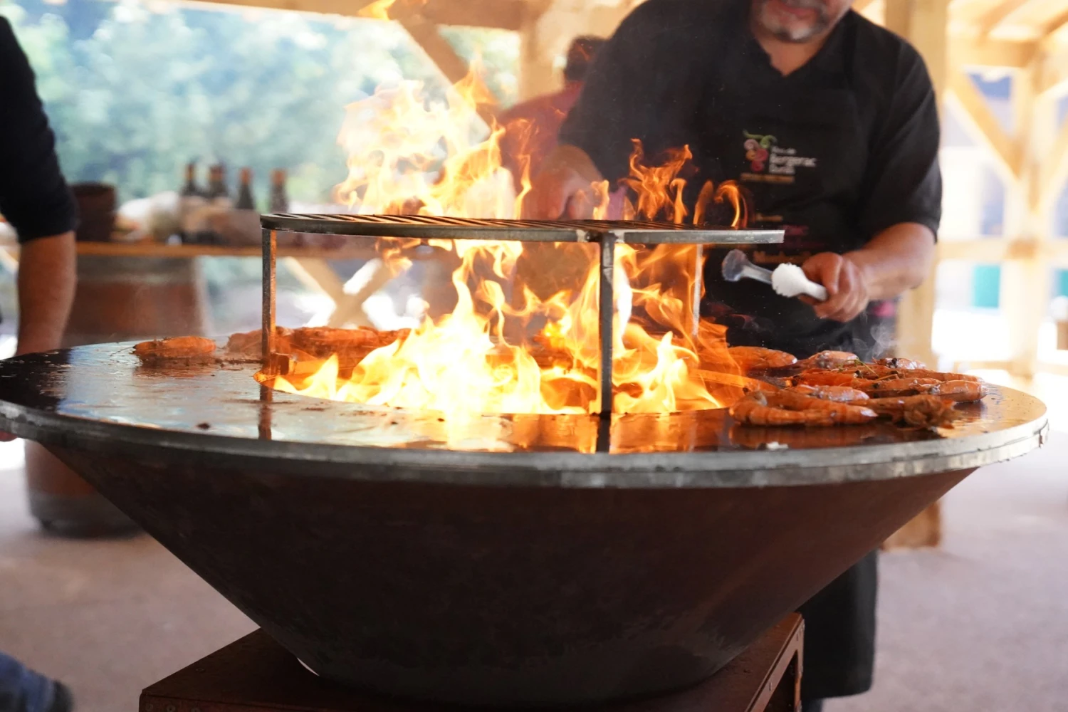 - Sa large plancha offre une surface de cuisson très large, permettant à chaque convive de trouver une place autour pour y griller son repas.