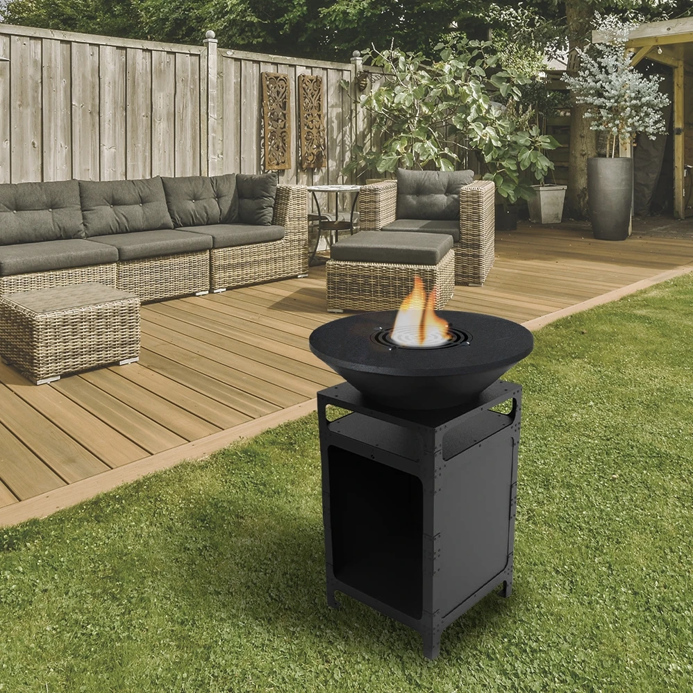 - Son socle et sa vasque en acier noir apporte une touche d’élégance
