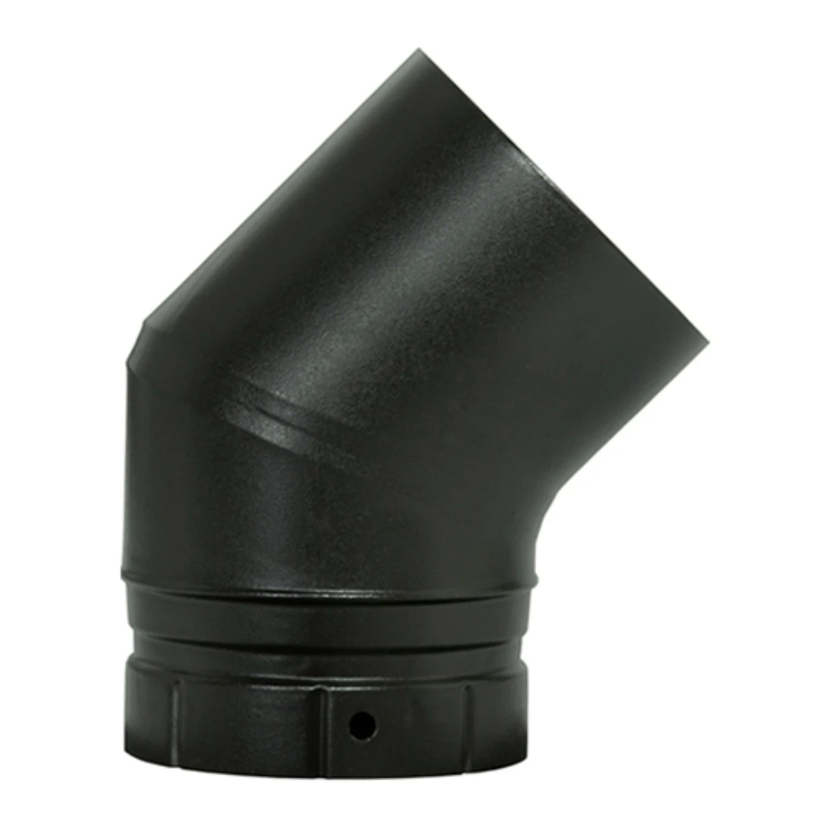 Coude à segment 45° émaillé pour le raccordement entre le poêle à bois et le conduit de cheminée traditionnel.
