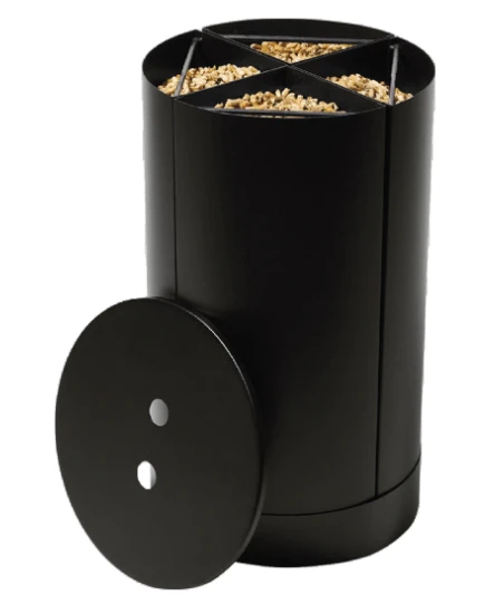 Découvrez le rangement à granulés CLOVER ! Il dispose de 4 compartiments distincts afin de faciliter le rangement et le transvasement de vos granulés. Son design élégant lui permet de trouver sa place près de votre appareil de chauffe.